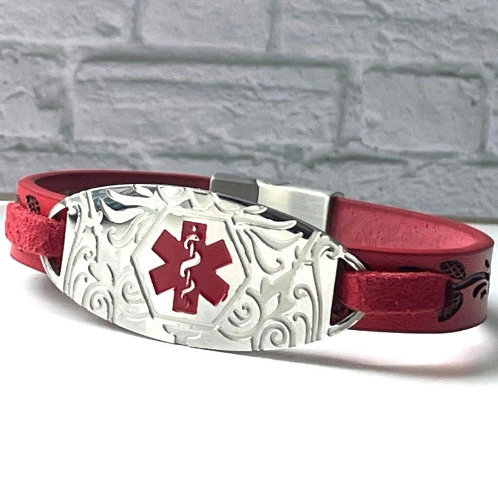 Forrest Red Leather Medical Alert ID Bracelet - Personalised